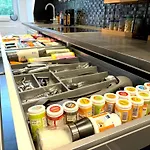 K dispozici je psací stůl, přístroj na přípravu kávy/čaje a místnost na posezení, plus kompletní kuchyně, vybavené chladničkou, toustovačem a troubou. Apartmán se skládá z 1 ložnic a 1 koupelen vybavených vanou a sprchou.